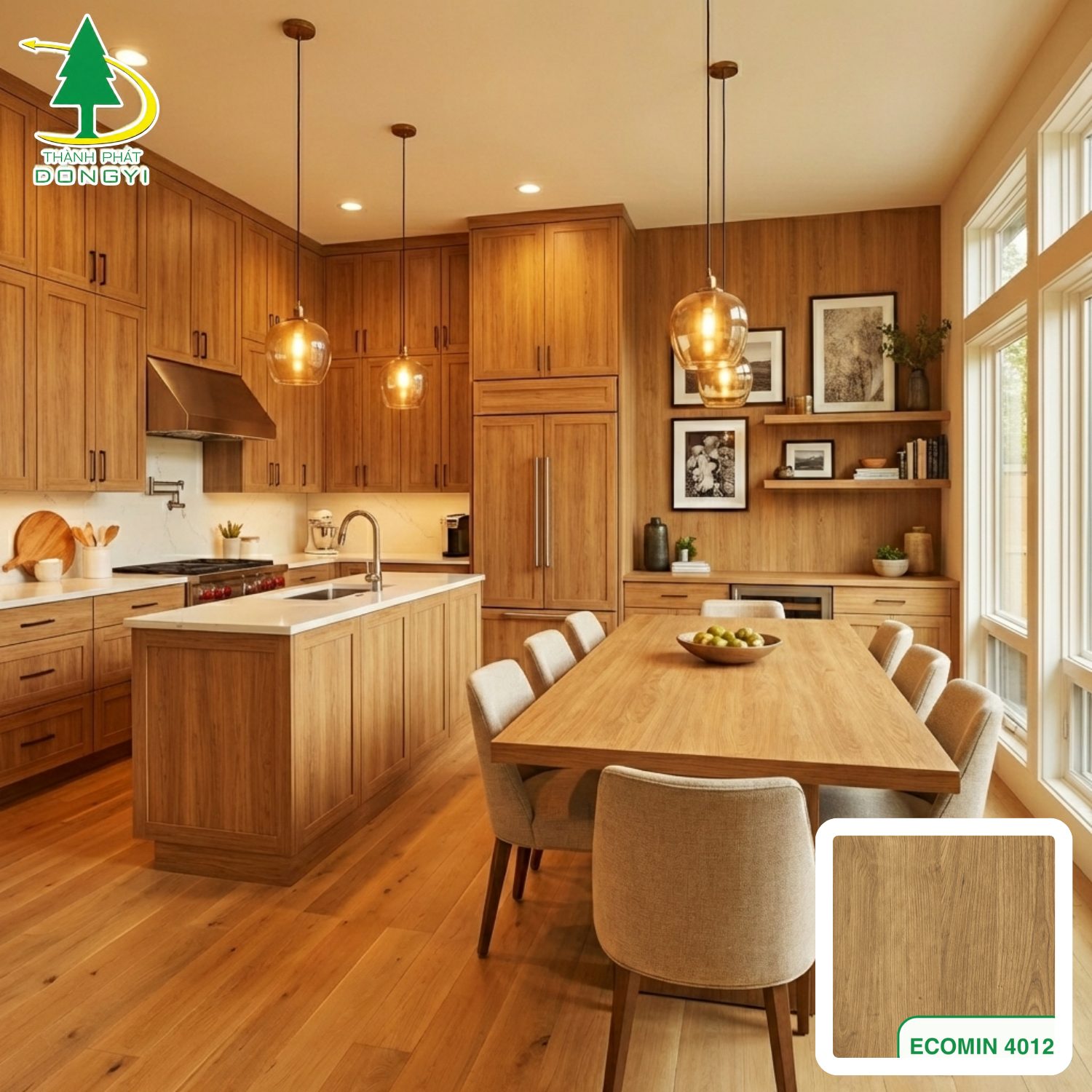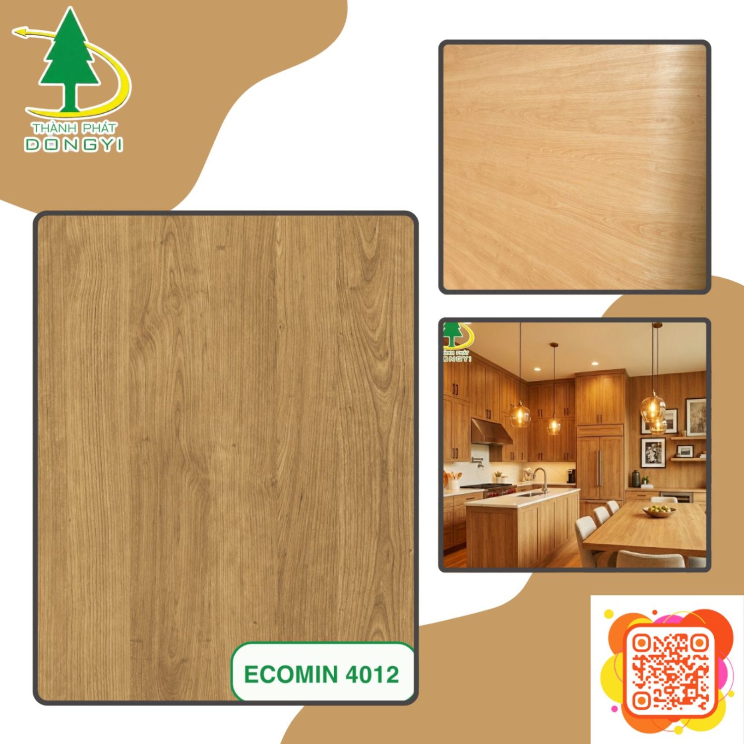 Màng Film PVC Vân Gỗ Sồi Vàng Sáng Vân Núi Mã ECOMIN 4012