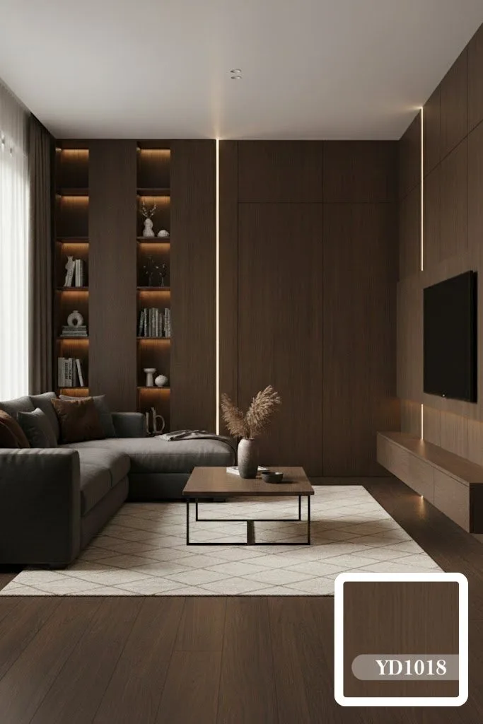 Màng Film PVC Vân Gỗ Óc Chó Sọc Nâu Trầm Mã YD1018
